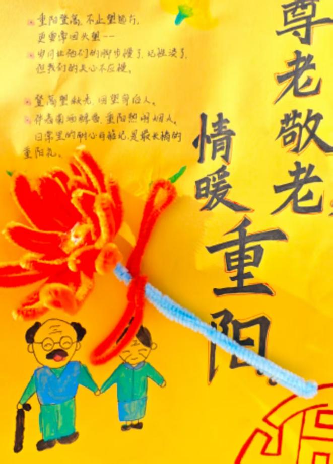 完成作品后,每组都积极展示自己的成果,学生们在活动中表现出较高的积极性,主动分享自己对作品的感受,为活动氛围的营造做出了贡献。此次“指尖传孝,爱在重阳”艺术创作活动,在学生们的心理建设层面产生了积极的影响,达到了预期的目的,促进了个人成长。让学生们感受到尽忠尽孝是一本永远读不完的书,每一页都写满了神奇与美丽。
