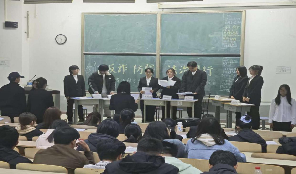 为进一步提升学生的反诈意识与法治素养,筑牢防范诈骗的思想防线,计算机科学技术系自律委员会与文学院青年志愿者协会于2025年11月11日星期二下午在南院八阶共同举办了“反诈防骗,法治同行”模拟法庭活动。本次活动以真实诈骗案例为蓝本,通过沉浸式庭审模拟,让参与者“零距离”感受司法程序,深刻认识诈骗犯罪的危害,取得了良好的教育效果与社会反响。