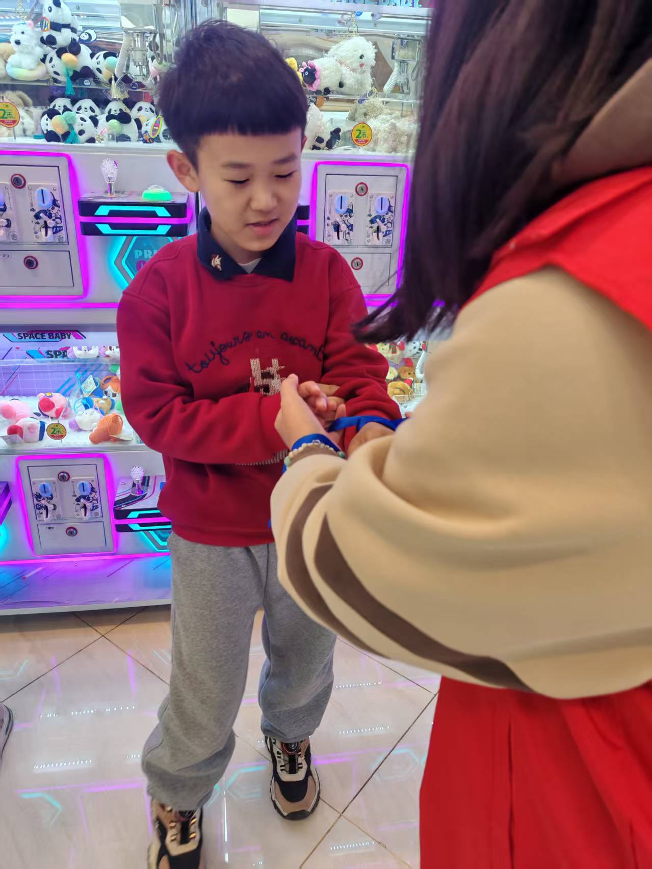 部分志愿者为往来的大小朋友系上蓝色丝带,送上精美小礼品,将关爱孤独症群体的理念,悄悄种在每一颗心中;还有志愿者手持暖心击掌牌,用充满温度的互动,为传递善意开辟了新的桥梁。义卖现场的志愿者们同样发挥着重要作用。他们守在摊位前,耐心为市民讲解义卖物品的用途,热情鼓励大家参与公益,每一次耐心讲解、每一次真诚互动,都承载着对孤独症儿童康复与教育的切实助力。