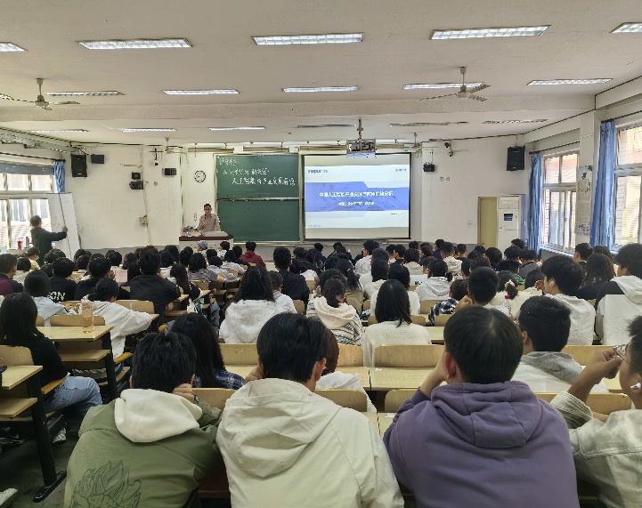 活动开始,系内资深教授深入浅出地剖析了大语言模型的技术原理与发展现状。随后,将视角从技术层面向产业应用延伸,通过智慧医疗、智能制造等,深刻阐释了AI技术如何与传统产业深度融合,催生“新实体”经济。讲座核心内容聚焦于学术研究与工业实践之间的差距。主讲人通过“推荐系统”、“智能风控”等典型案例,深入剖析了从模型训练、调试到最终部署上线的全流程,并重点讲解了性能优化与工程化瓶颈等课本中较少涉及的实战难题。在互动环节,教授围绕技术伦理、职业选择等学生感兴趣的话题,与同学们展开了热烈而深入的交流。现场气氛活跃,掌声不断,充分展现了这场对话的精彩与吸引力。