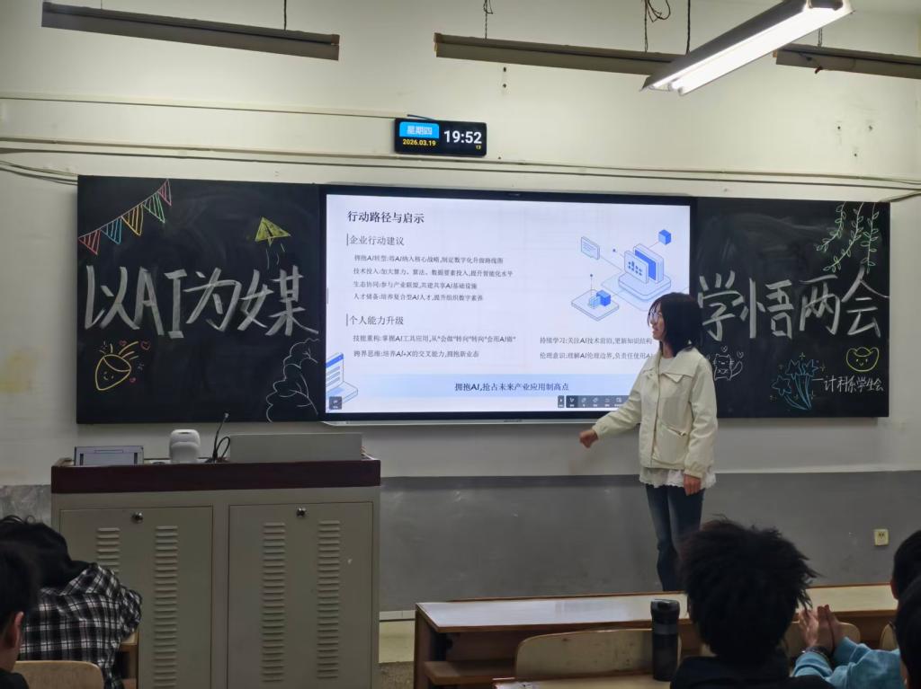 本次活动不仅是一次两会精神的学习课堂,更是一场专业学子的思想淬炼与成长赋能。通过自主备课、登台分享,将理论学习与专业认知、职业规划深度绑定,真正实现了“学思用贯通、知信行统一”。同学们主动挖掘两会中的科技政策红利,深刻认识到AI技术与数字经济的发展机遇,进一步坚定了深耕专业、创新突破的信念。这次活动,搭建了理论学习与专业交流的平台,展现了计算机科学技术系的同学们心系家国、锐意进取的精神风貌。